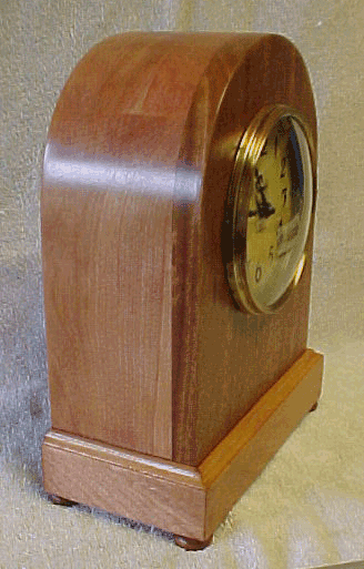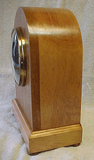 E. Ingraham Shelf or Mantle Clock Model: Unknown Year Built: Unknown Serial No. Unknown Finish: Wood is probably Cherry, with a clear Antique Oil Finish applied. Movement: E. Ingraham, Condition: Excellent. Freshly refinished. The case top has been cracked at one time, cracks show, but it is a good repair. Original Dial. Movement Condition: Excellent. Movement has just been overhauled and has a 1 year warrantee. Price: $225.00 F.O.B Grover, NC